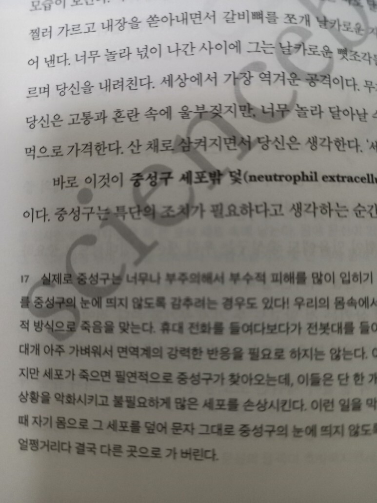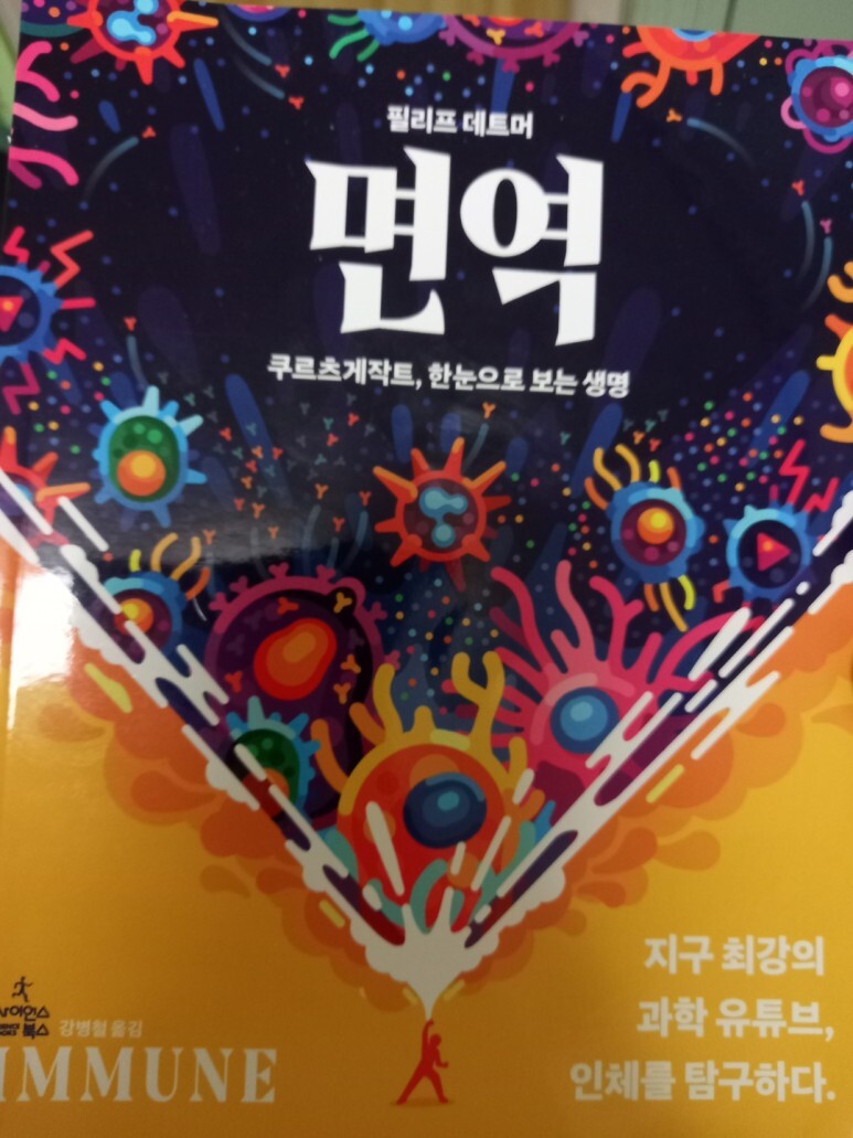 이 책으로 인해서 어려운 <면역>에 대해서 조금이나마 이해할 수 있었다. 앞으로 이런 과학 서적이 생명과학뿐만 아니라 물리학, 수학, 화학, 지구과학 등과 같은 여러 과학 분야에서 많이 나왔으면 좋겠다. 많은 사람이 과학을 어려워하고 과학에 흥미를 느끼지 못하고 있다. 이런 책들이 많이 나온다면 사람들이 더욱더 많이 과학에 관심을 두고 과학을 재미있고 흥미롭게 공부할 수 있을 것 같다는 생각이 든다.